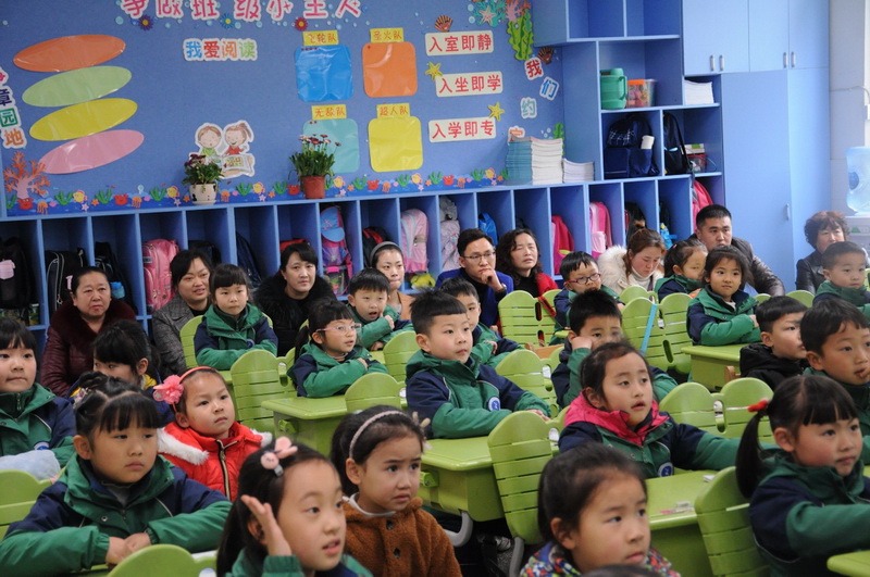 接着,阳光宝贝幼儿园的师生、家长们来到了我校一年级各班的课堂,感受小学的学习氛围。小朋友们瞪大了眼睛,好奇地观察着小学一年级的课堂。