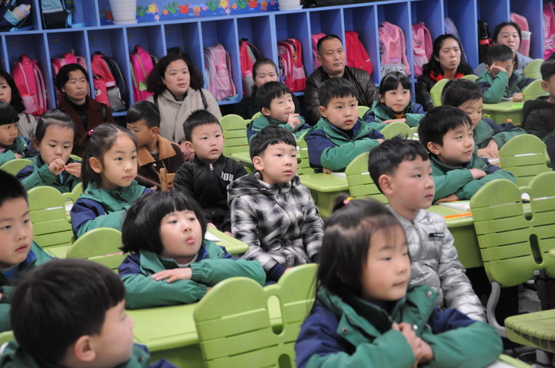 Then, teachers, parents and children from Sunshine Baby Kindergarten came to the classes in Grade one to feel the learning atmosphere of primary school.They gave their whole attention to the lessons.