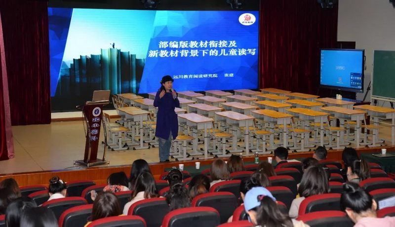 First of all, the lecture was given by Zhang Jian, the dean of the Yuanchuan Institute of Education, on the topic of “Intermediate textbooks and children's reading and writing in the context of new textbooks”. Mr. Zhang Jian has guided us from the characteristics of the textbooks, the reading strategies, the focus of children's reading, and the reading of the whole book based on the new textbooks, and pointed out the ideas and directions for our future education.