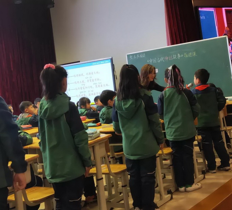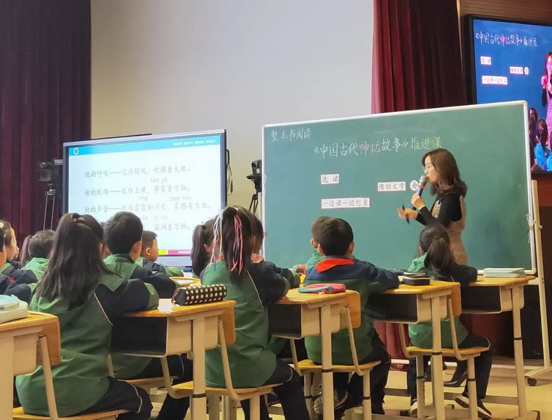 The second class is the promotion of the whole book of "Ancient Chinese Myths" brought by the member of the Ma Changjun Masters Studio in Dujiangyan Ren Hong. Ms. Ren Hong’s class respects the child’s imagination, develops the child’s language, teaches the children the skills of reading mythological stories, and guides the children to master the reading methods of the mythical stories. The classroom is lively and interesting, and the children’s imagination is rich and colorful.