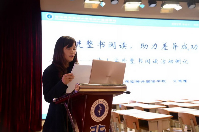 The director of the Ma Changjun Masters Studio in Dujiangyan and the director of the Curriculum Development and Guidance Center of our school brought the results of the school to Wu Hongyan's teachers—“Promoting the whole book reading and promoting the difference success”. Teacher Wu started from the school's concept of running a school and introduced some practices for the improvement of reading literacy in the Experimental Foreign Languages School of Dujiangyan North Street Primary School.