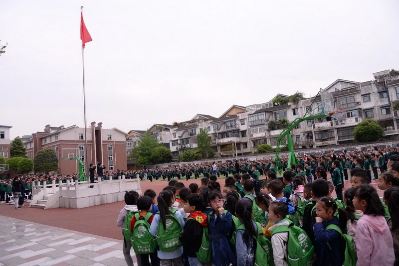 First of all, the children came to the playground and took part in the flag-raising ceremony with their brothers and sisters. The elementary school flag-raising ceremony is really solemn, children and parents are also respectful.