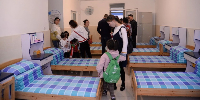 Then, along the school calligraphy culture wall, the children came to the dormitories.