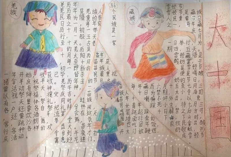 “五十六个民族,五十六枝花,五十六族兄弟姐妹是一家!”