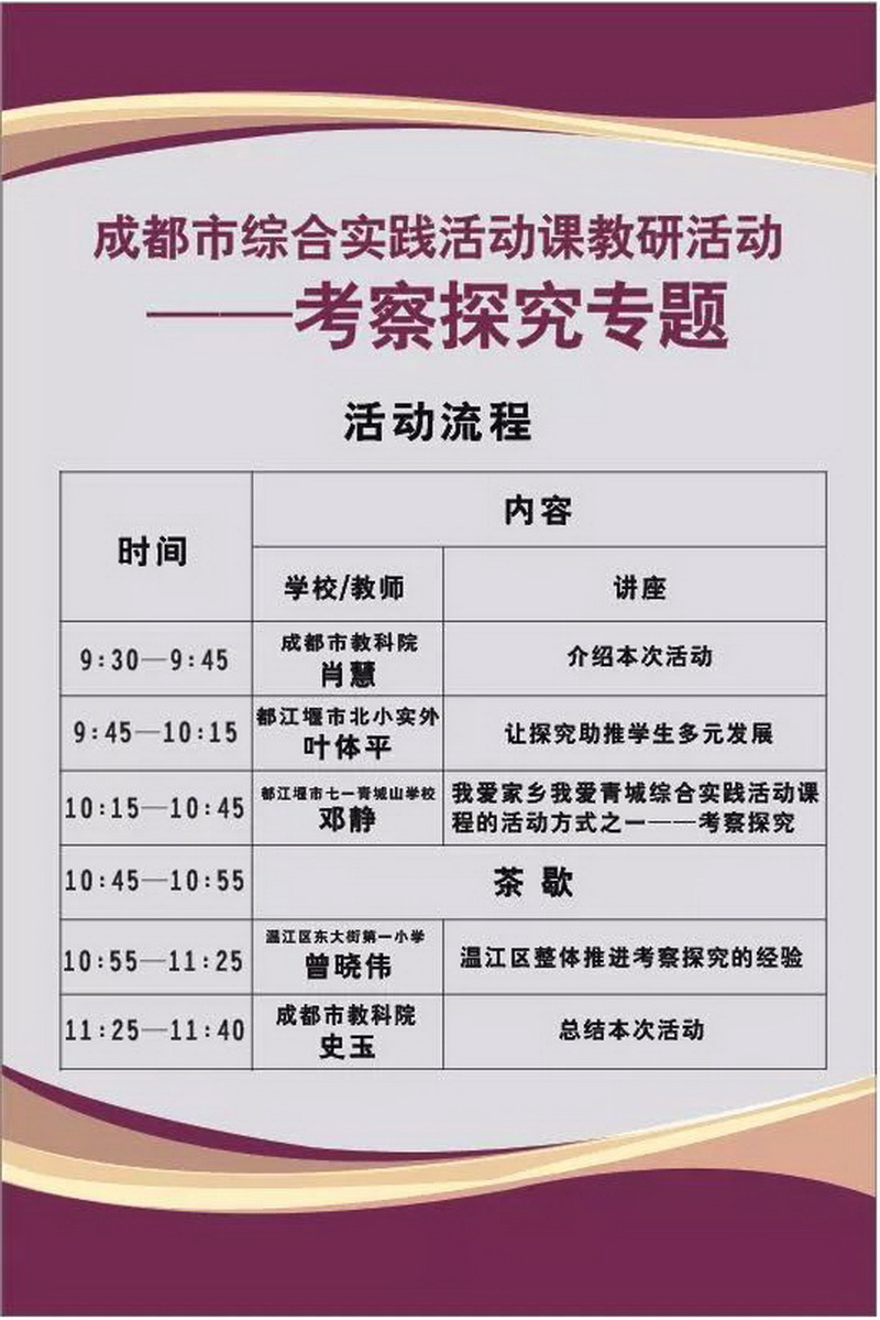 清风拂面,声声春雨。2019年4月12日,成都市综合实践活动课教研——考察探究专题活动在我校举行。