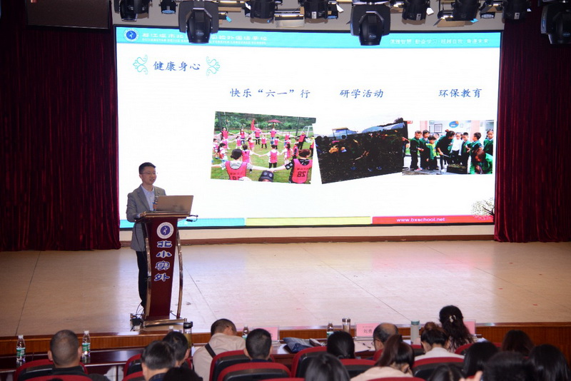 都江堰市北街小学实验外国语学校叶体平主任作《让探究助推学生多元发展》专题发言。