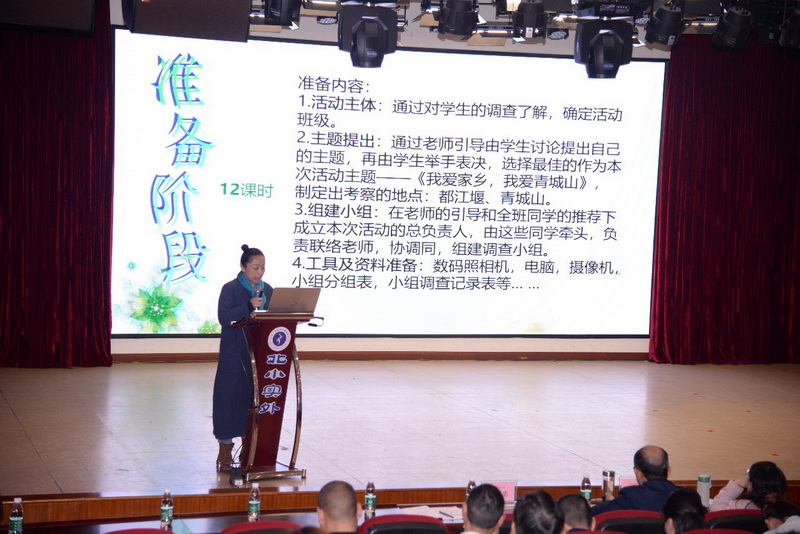 Zeng Xiaowei from Dongdajie No. 1 Primary School in Wenjiang District, gave a lecture on "Sharing the Experience of Entire Promotion of Investigation and Exploration in Wenjiang District".