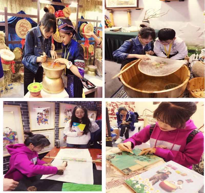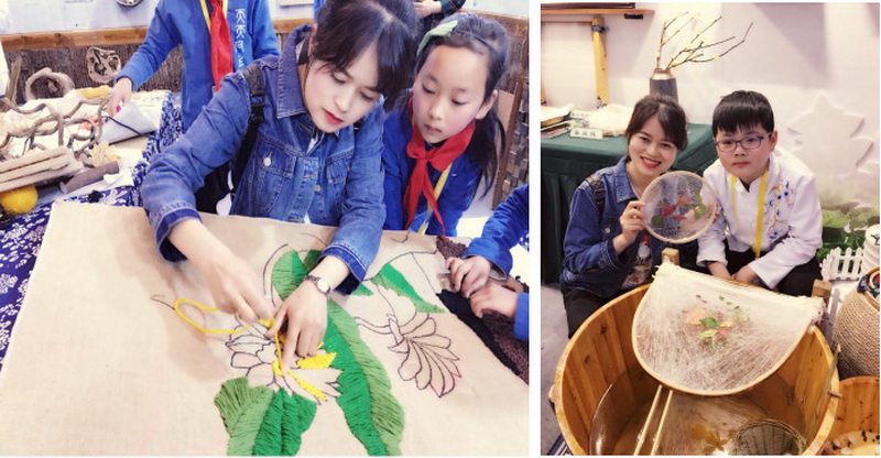 The workshop is rich in materials such as paper-cutting, shadow-shaping, weaving, embroidery, dough-making (clay sculpture), new year paintings, prints, tie-dye (batik), and creative production. The purpose is to educate and guide students to inherit and carry forward the fine traditional Chinese culture, cultivate profound national sentiments and enhance cultural self-confidence.