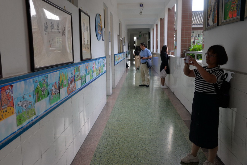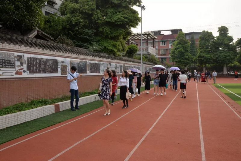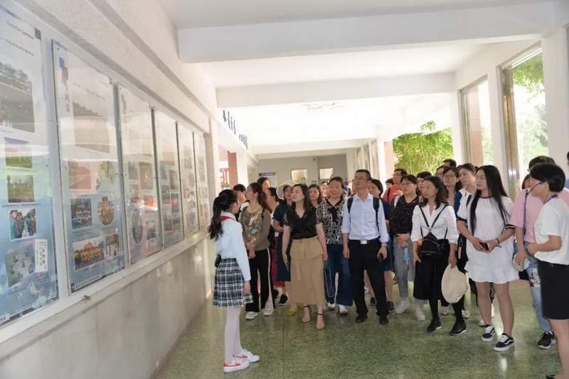 我校的红领巾志愿者侯心怡、张艺朵、高震蓬、唐宇新、吴悠和艾小红老师带领来宾参观了校园,向来宾介绍了我校的校园文化、办学理念、办学特色和办学成绩。优美的校园环境、独特的校园文化、百米书法长廊和翰墨韵味的水洗台等都给来宾留下了深刻的印象。