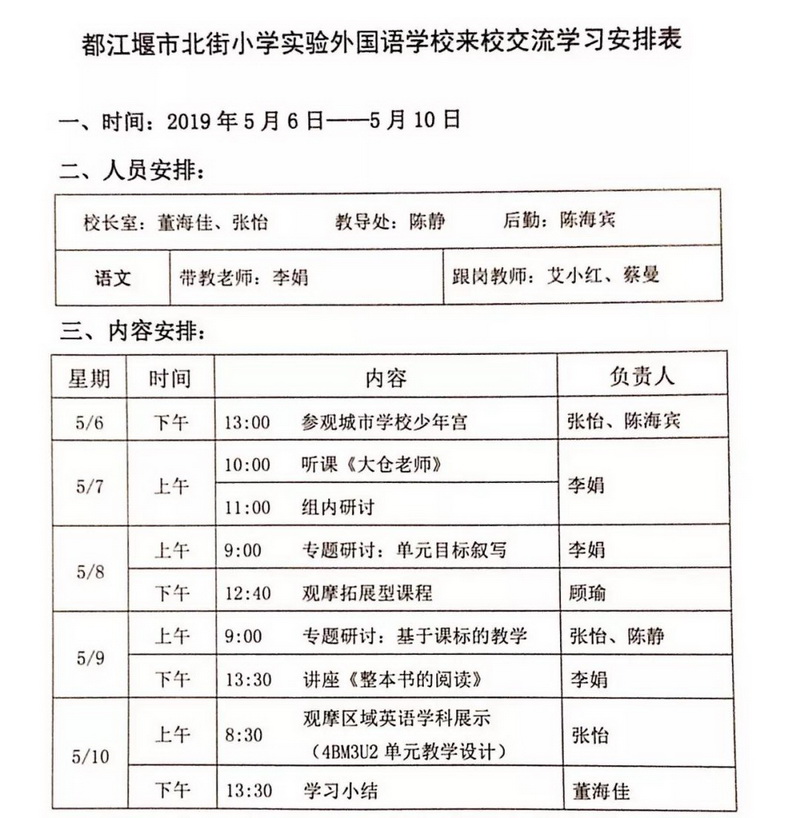In the conference room, Principal Hu Tao of our school and Principal Zhang Yi of Fudan Primary School had on-site exchanges on the recent development of their respective schools and curriculum settings, and then Principal Zhang Yi made detailed work arrangements for the teachers of our school.
