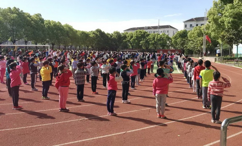 8:15,一行人在庄主任的带领下参观了学校的升旗仪式和广播体操。