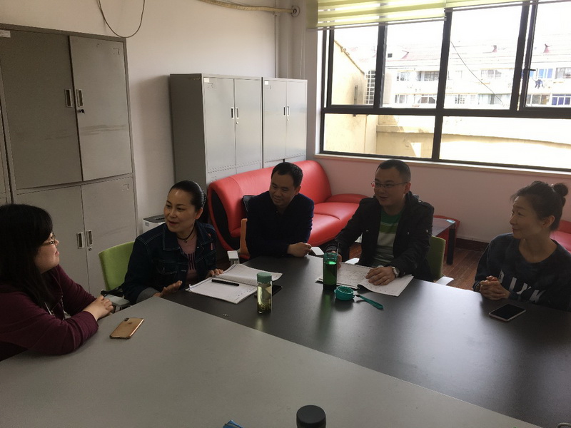 At 8:00 a.m., three teachers, Hu Tao, JiangJianping and Zheng Shuang, came to Shanghai Luyuan Primary School to discussthe study trip with Principal Wang and Director Zhuang.