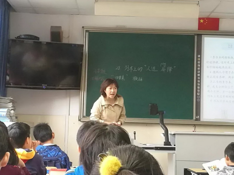 早上9:15,艾小红、蔡曼老师到复旦小学,走进4.4班聆听了李娟老师的一堂课《列车上的“人造屏障”》。