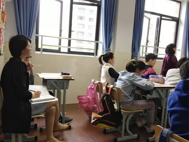 Ai Xiaohong and Cai Man came to Fudan Primary School and listened to a lesson by Li Juan.