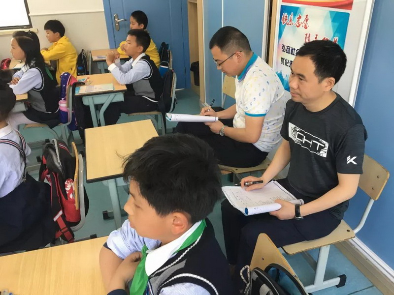 Early in the morning, President Dong Haijia of Shanghai Fudan Primary School, who had just returned from Beijing, rushed to the school to care about the work of the Chinese group and give guidance on the direction of the unit's goal.