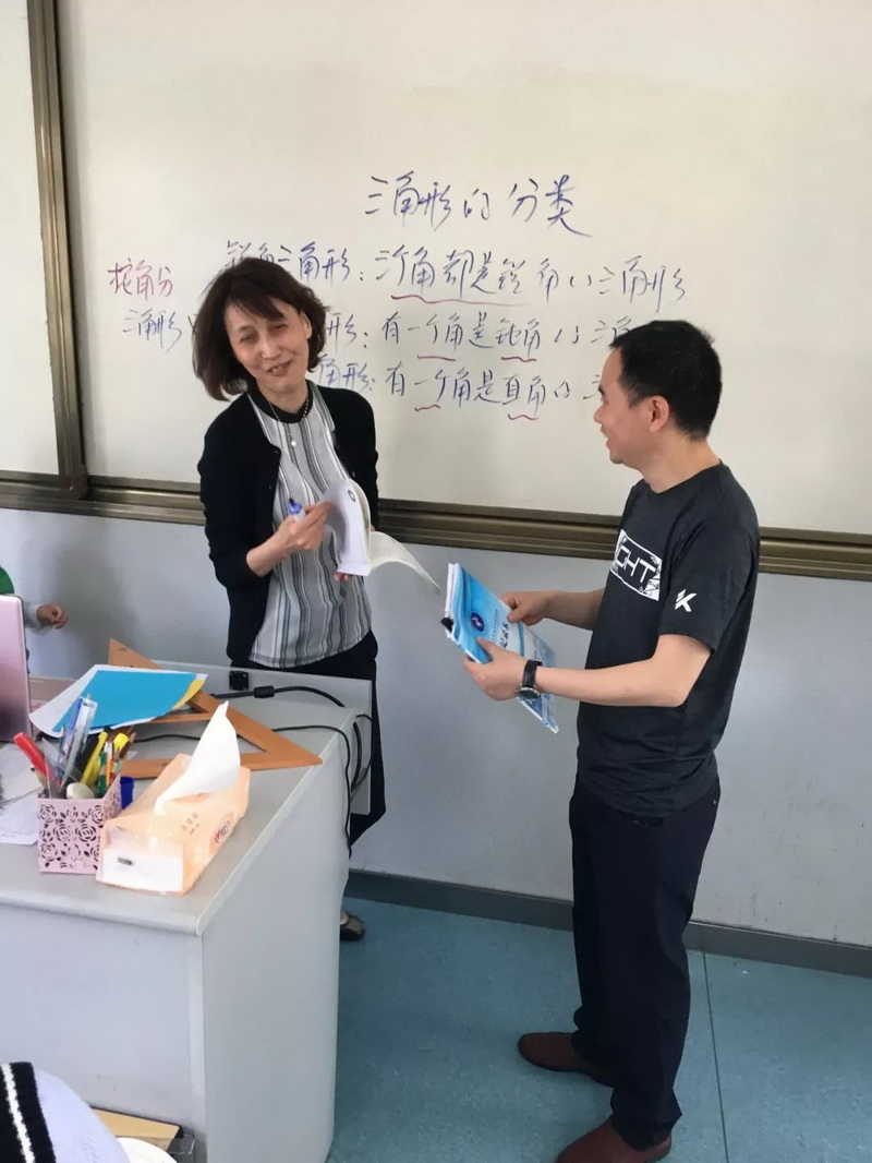 In the morning, we studied at Shanghai Luyuan Primary School. We attended the "Triangle Classification" taught by taecher. Zhou Wei, and then we enjoyed the first-grade feature class "Interesting Sudoku" and communicated with the two teachers. .