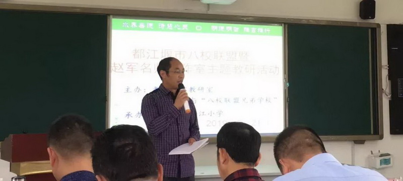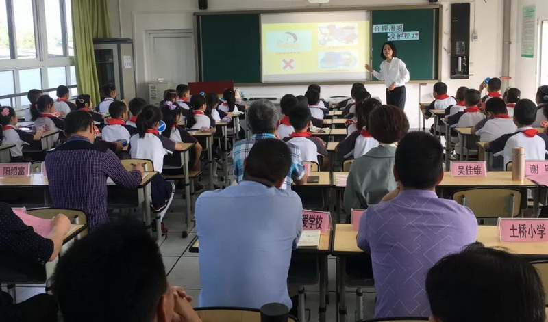 On May 21st, a seminar on the theme of "Eight Schools Alliance of Dujiangyan City" and "Zhao Jun Famous Teachers' Studio" was heldin Yanjiang Primary School. On behalf of Zhao Jun Famous Teachers' Studio, WangYa, a PE teacher of our school, taught the knowledge of health theory" Reasonable Use of Eyes to Prevent Myopia".