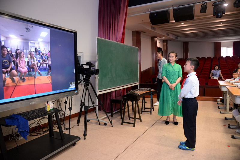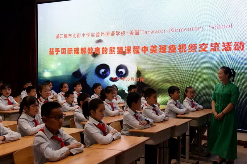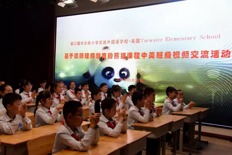 随着一声声问候,我校基于国际理解教育的熊猫课程远程视频课堂开课了!这次远程课堂是我校在美国亚利桑那州立大学孔子学院的大力支持下与美国亚利桑那州Tarwater小学开展的第一次活动,来自Tarwater小学四年级的学生与我校四年级六班学生参加了此次活动交流。