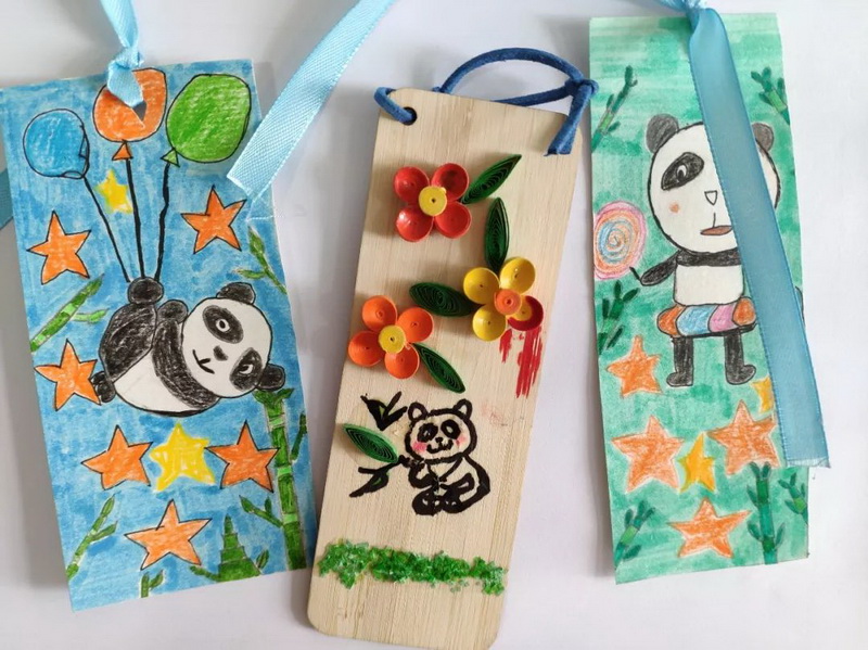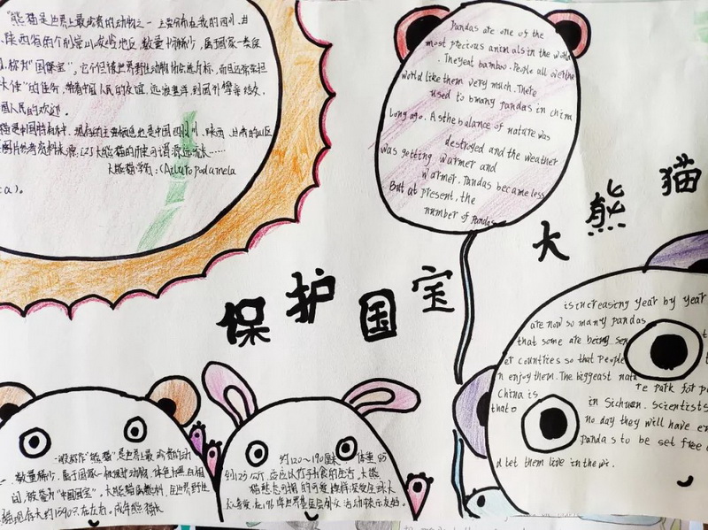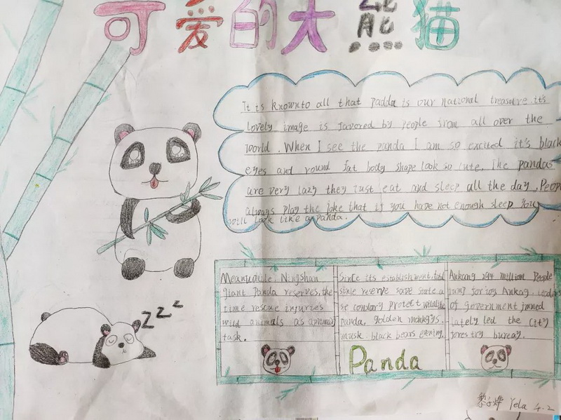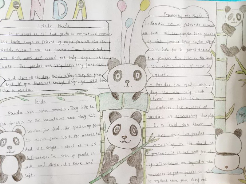 在课堂中孩子们通过双语对话了解了Tarwater Elementary School学习生活,来自我校“熊猫文化”志愿者小分队的徐鑫杰同学向远在美国的小伙伴们介绍了我们都江堰的大熊猫,并发起了熊猫文化个性书签及海报制作活动,倡议大家保护大熊猫,热爱大自然。
