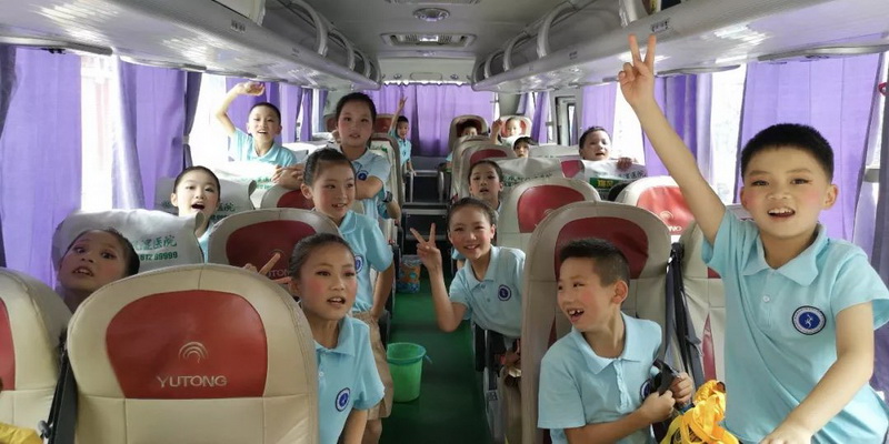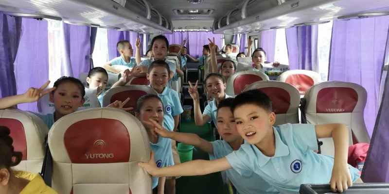 Arriving at the destination, the children are thrilled. Let's take agroup photo first.