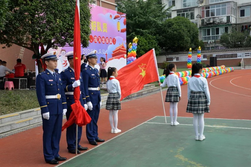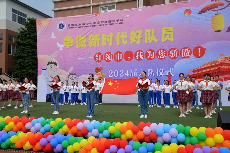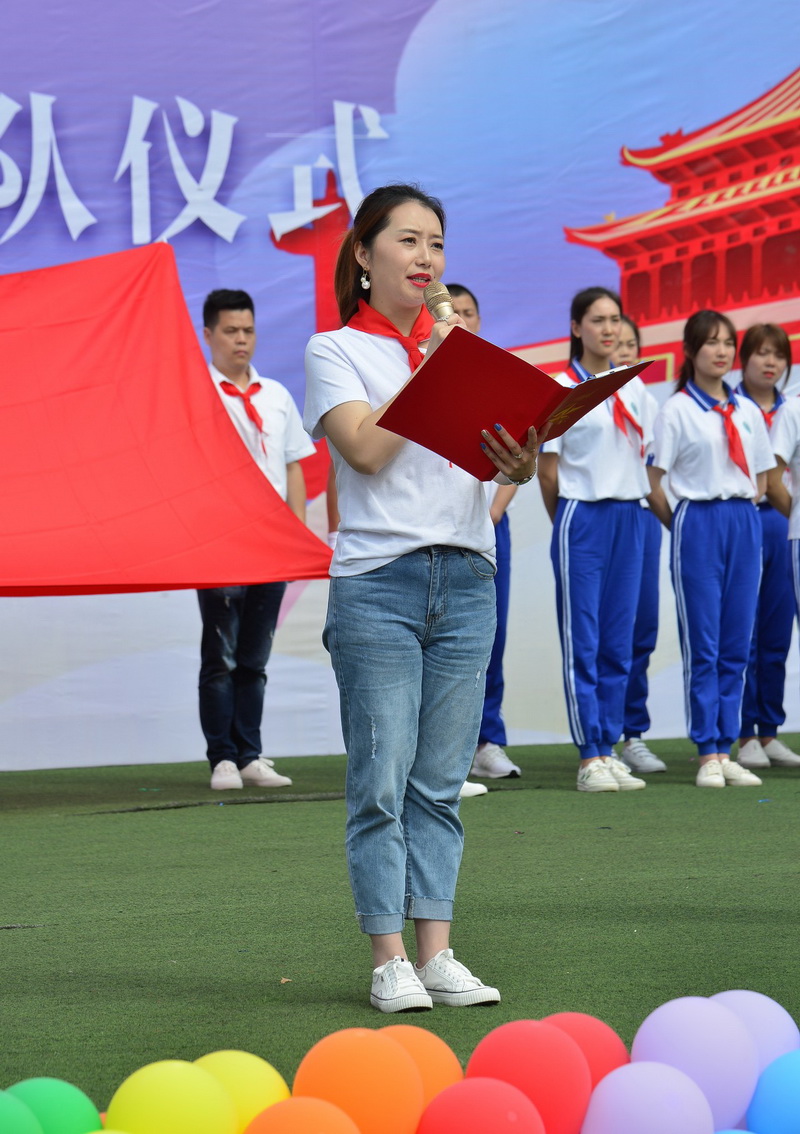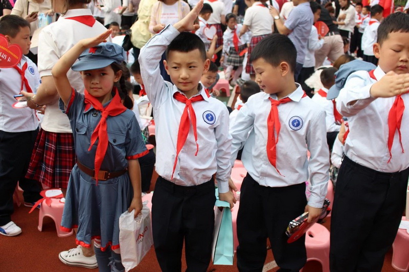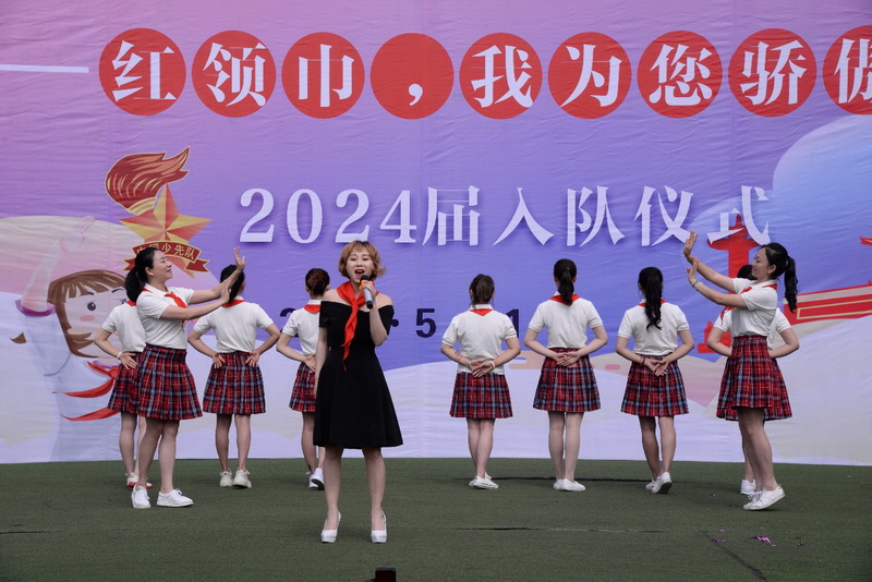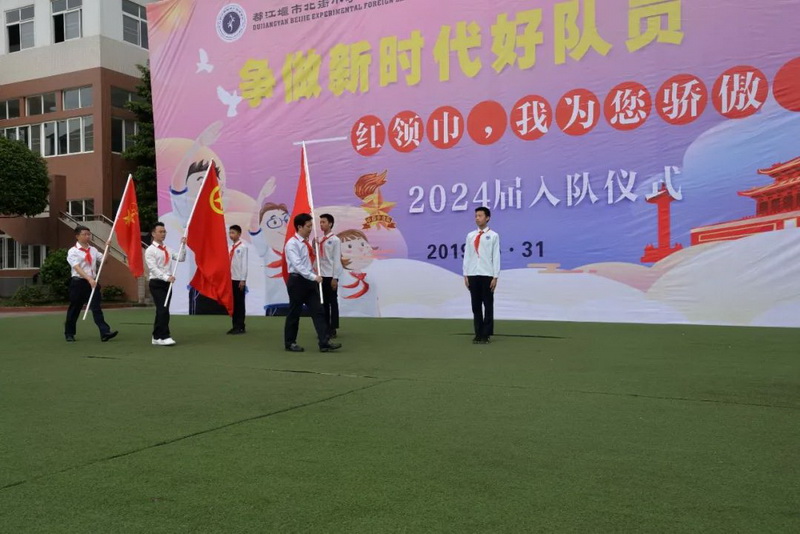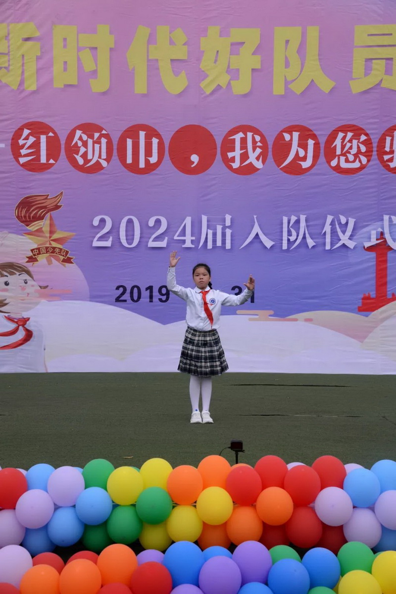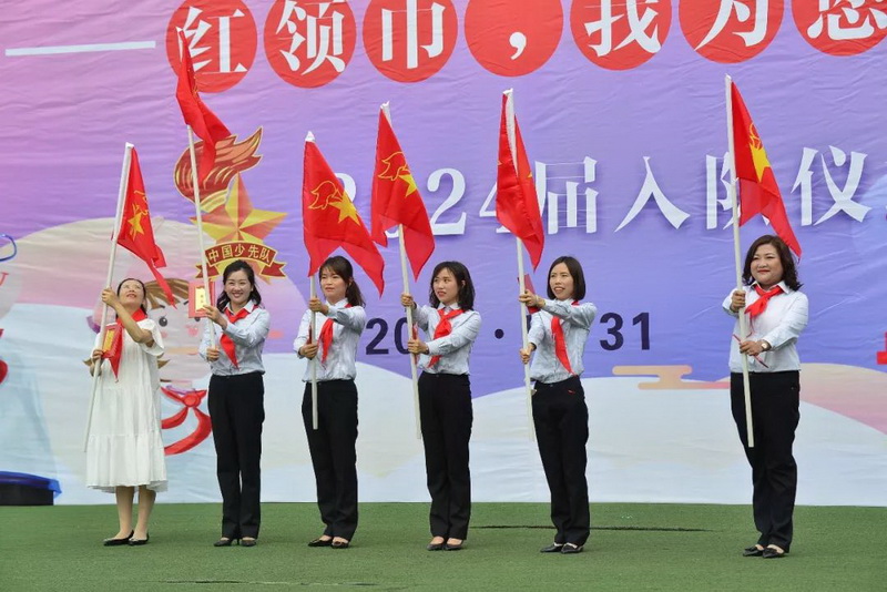 On May 31, with the breeze, bathing and sunshine, the team flags were flying and the songs were loud. Our school held the 2024 entrance ceremony with the theme of "striving to be a good player in the new era - red scarf I am proud of you". 294 students officially joined the Chinese Young Pioneers and became glorious young pioneers.