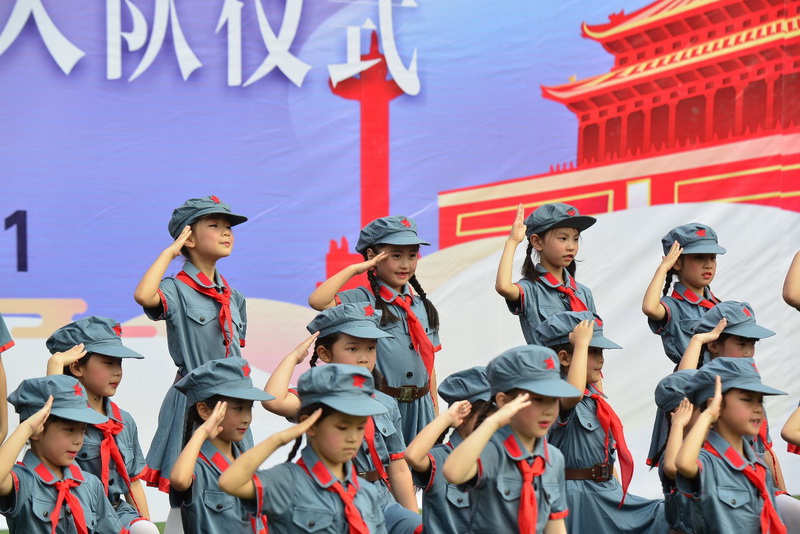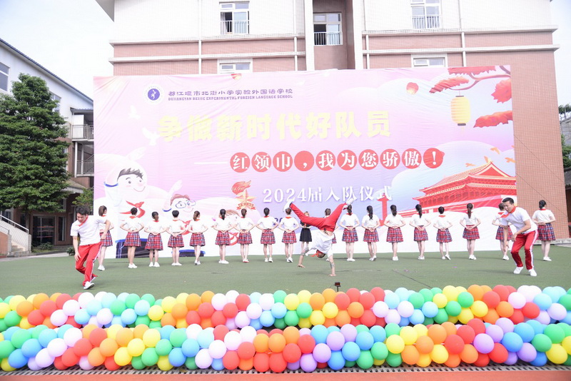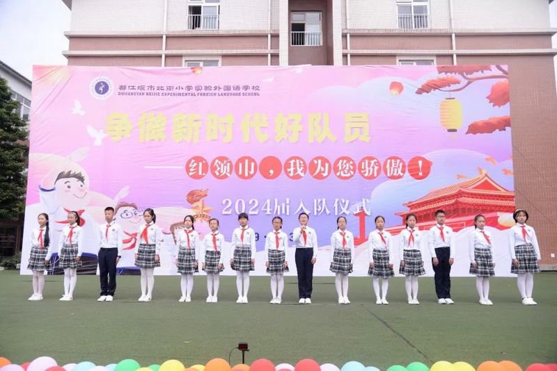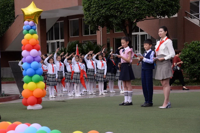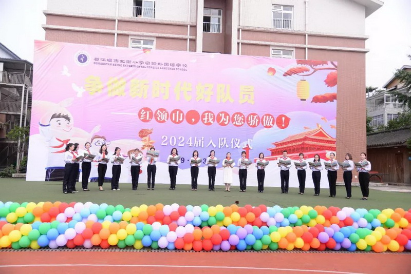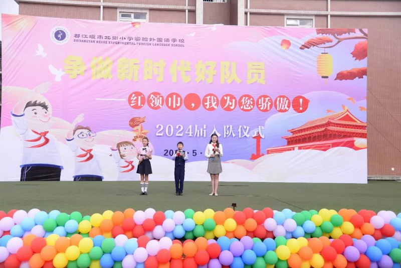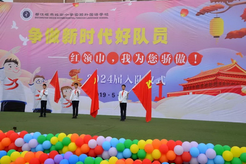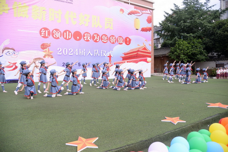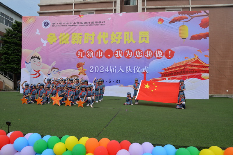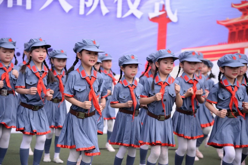 On May 31, with the breeze, bathing and sunshine, the team flags were flying and the songs were loud. Our school held the 2024 entrance ceremony with the theme of "striving to be a good player in the new era - red scarf I am proud of you". 294 students officially joined the Chinese Young Pioneers and became glorious young pioneers.