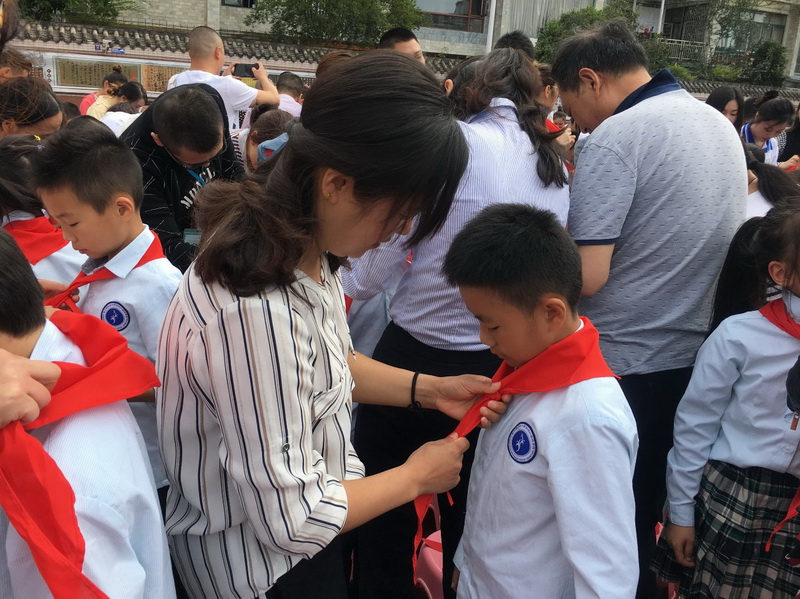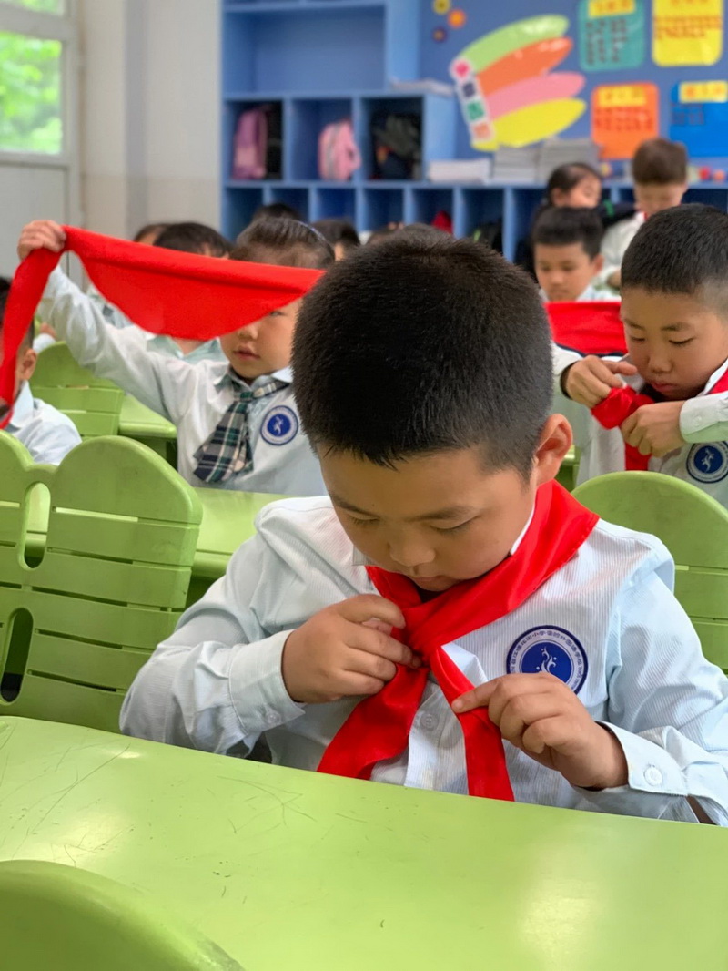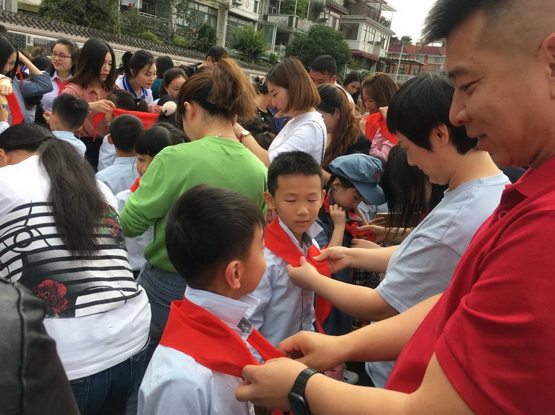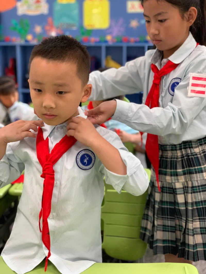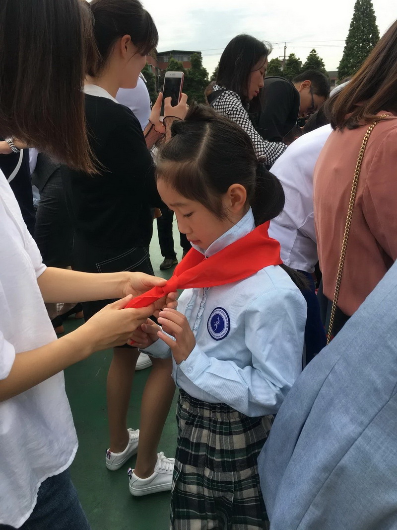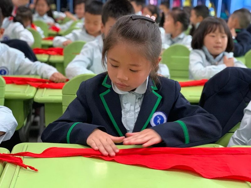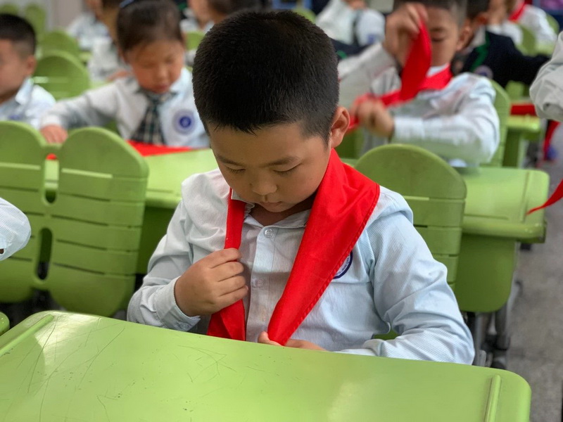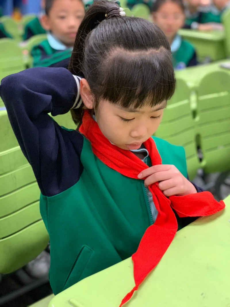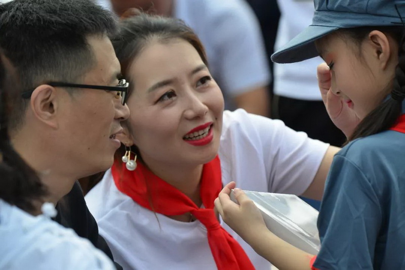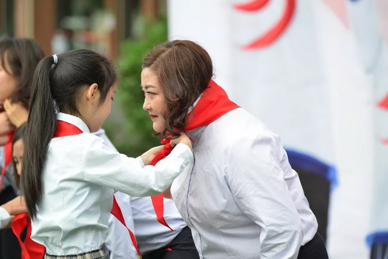 爸爸妈妈亲手为我们戴上象征传承的红领巾,仿佛看到了他们的童年。