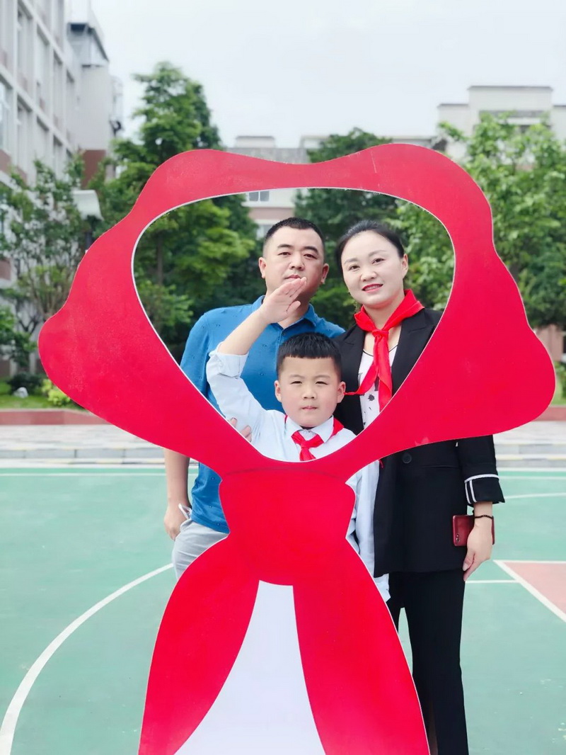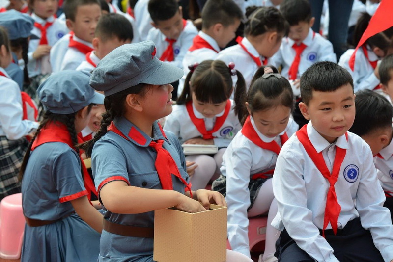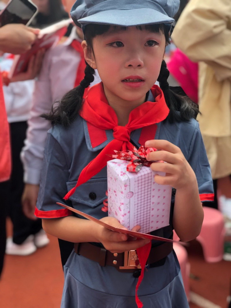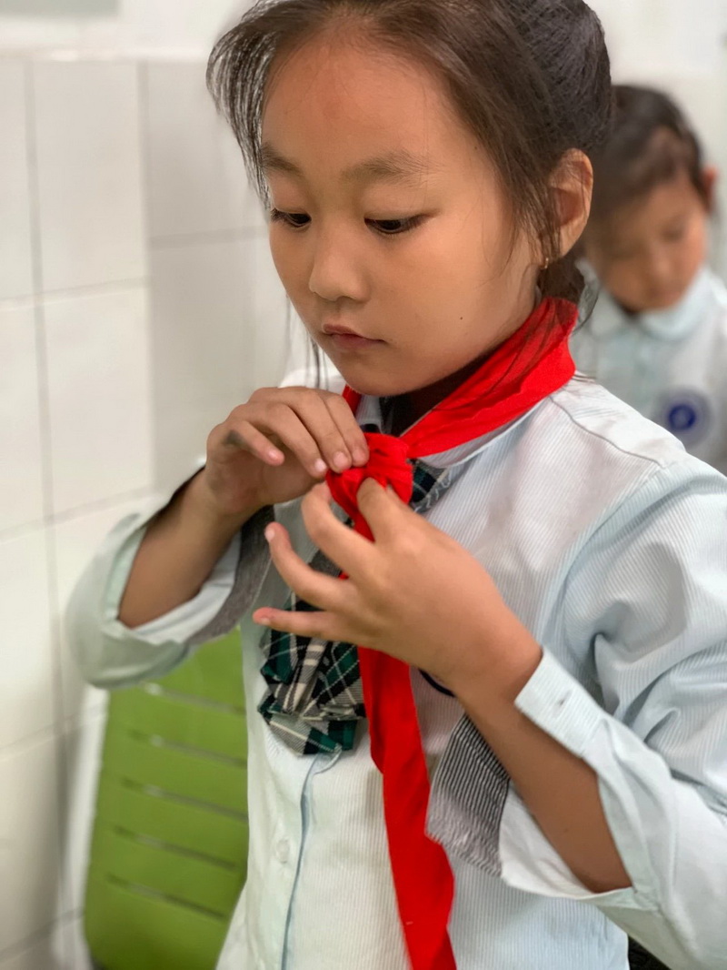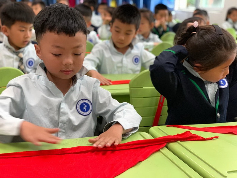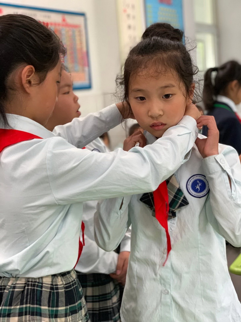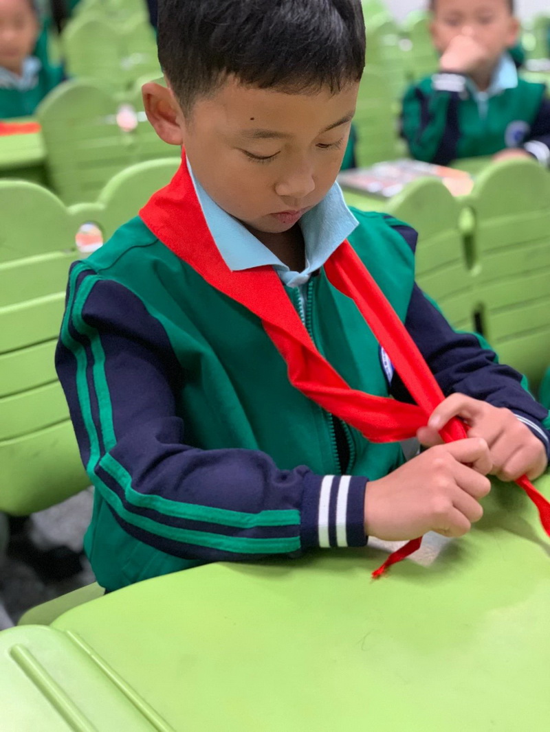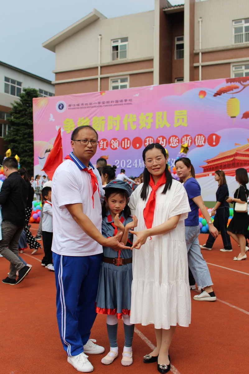 爸爸妈妈亲手为我们戴上象征传承的红领巾,仿佛看到了他们的童年。