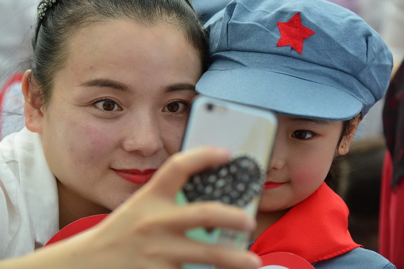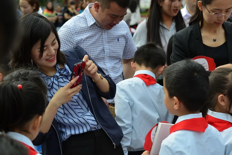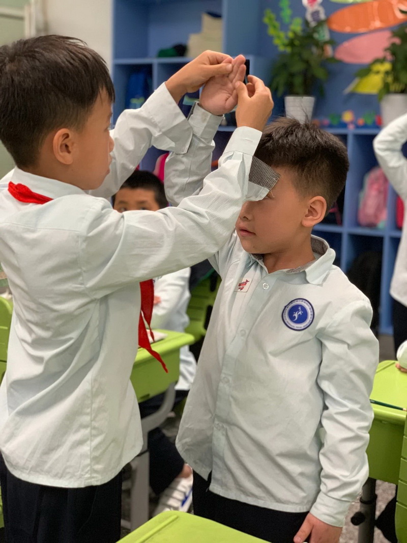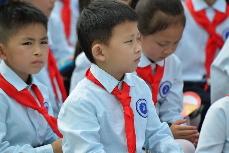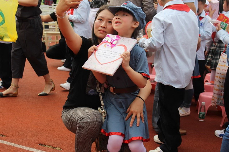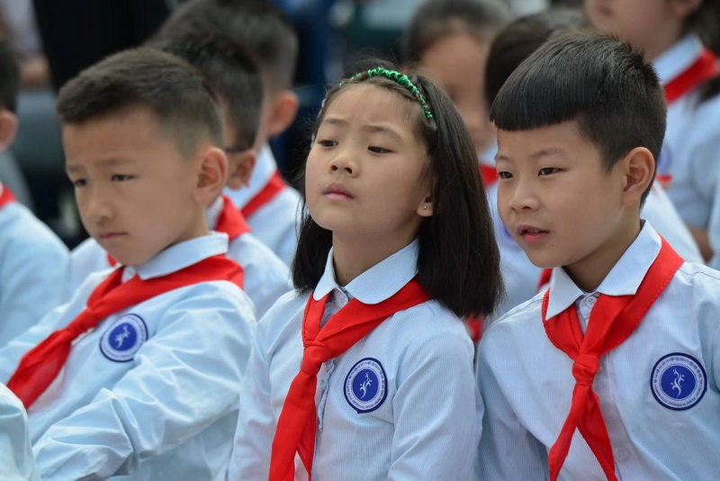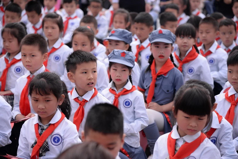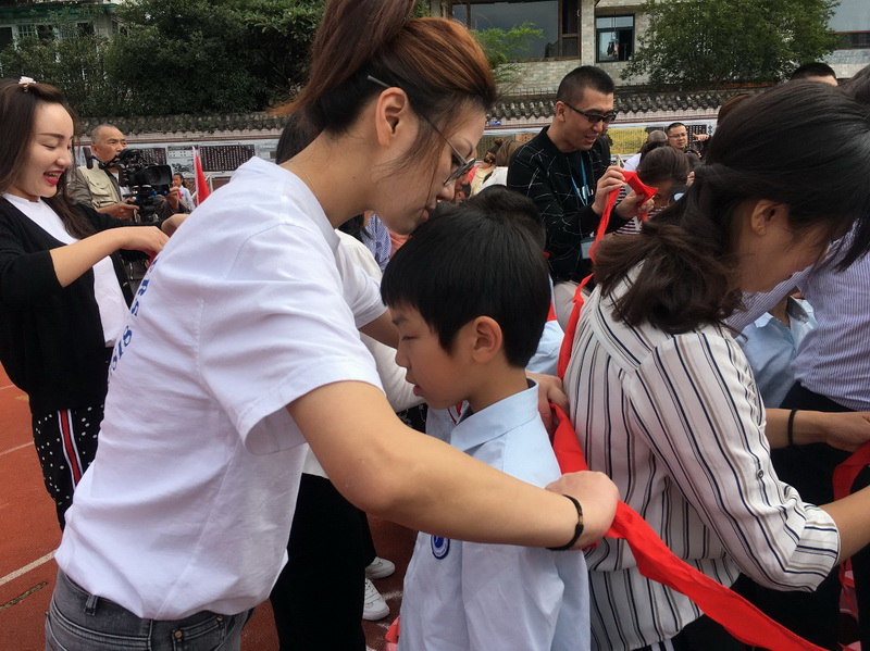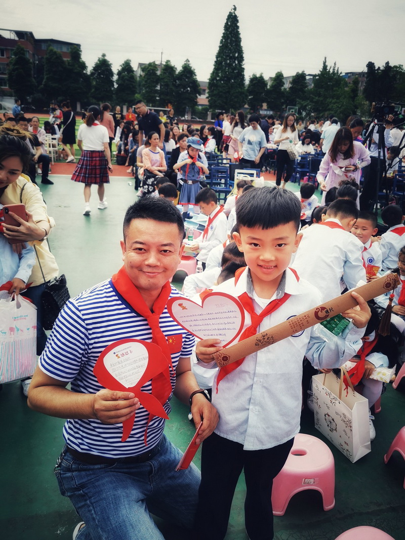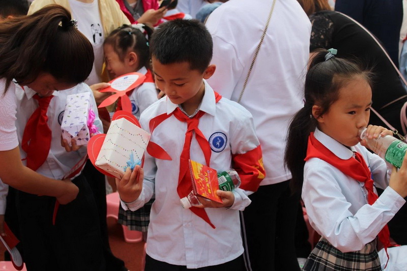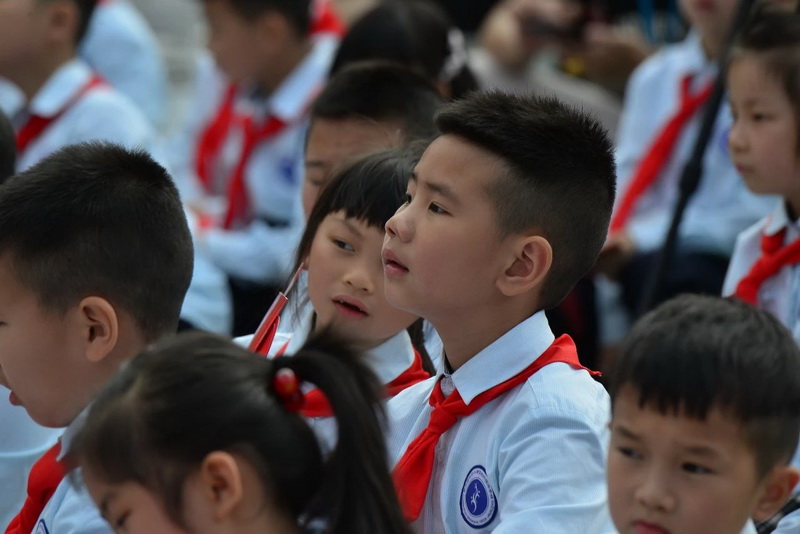 爸爸妈妈亲手为我们戴上象征传承的红领巾,仿佛看到了他们的童年。