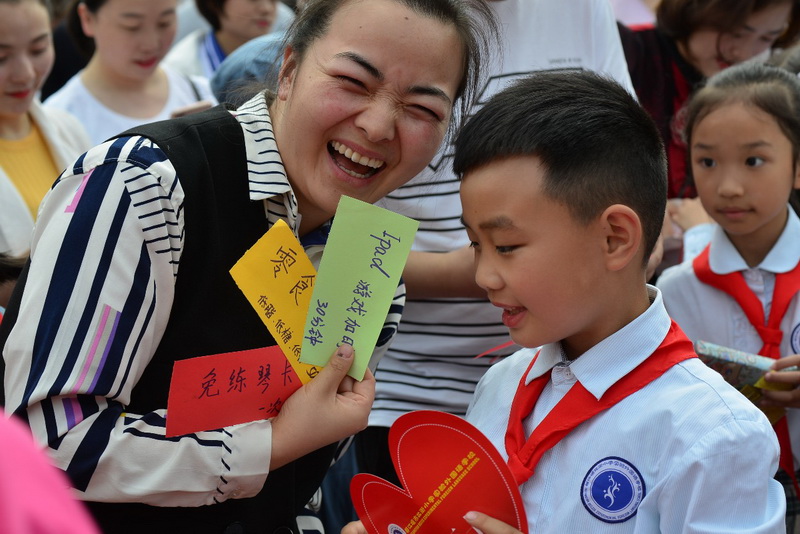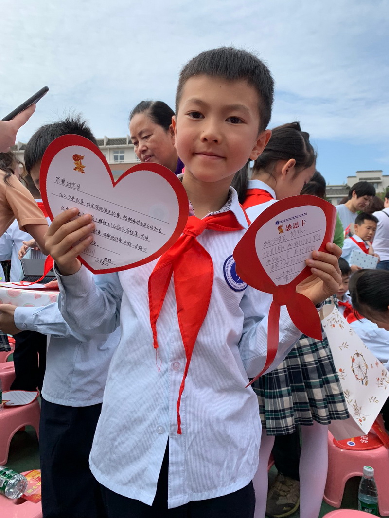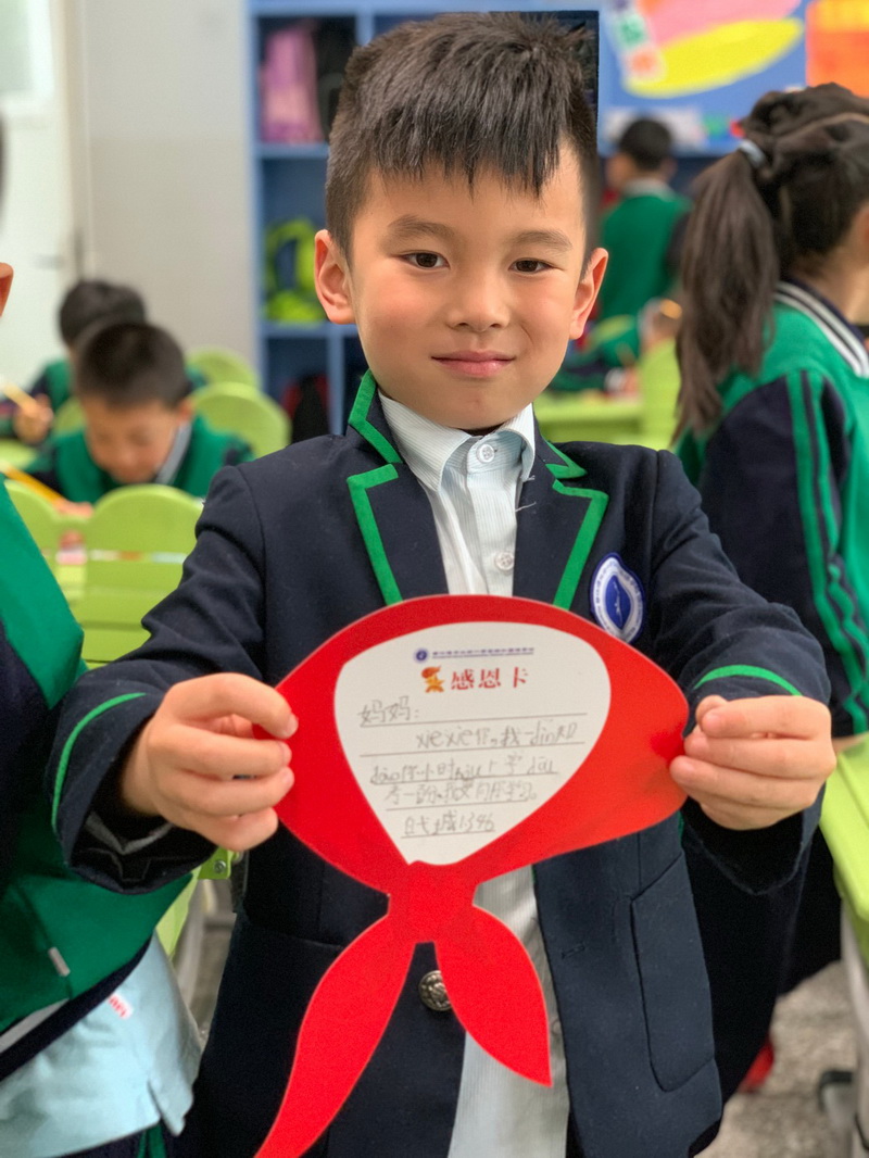 我将自己精心准备的感恩卡送给爸爸、妈妈,一张卡,一颗心。