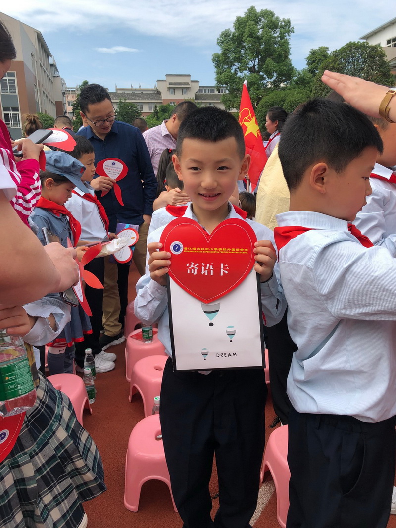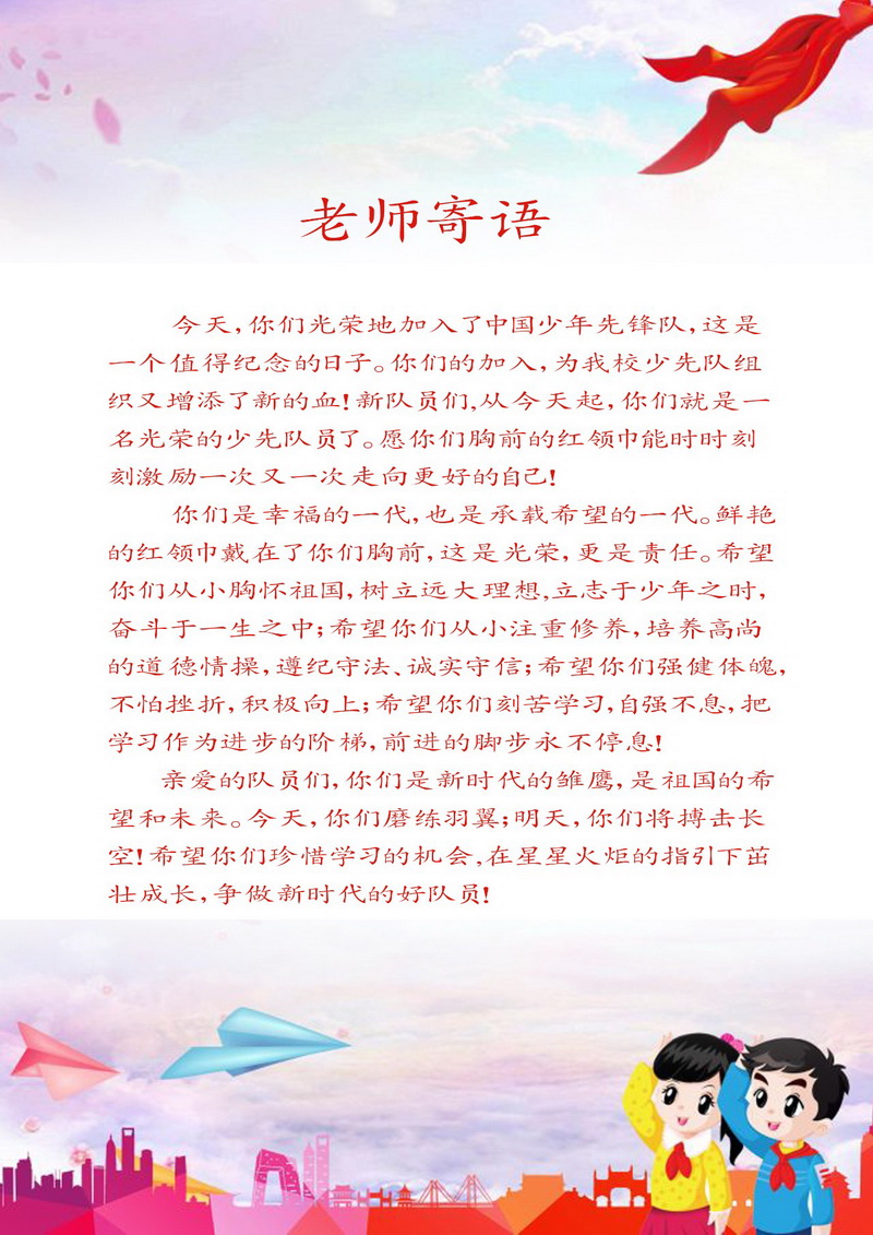 Our teachers also sent us their best wishes - "You are the fluttering red scarf"