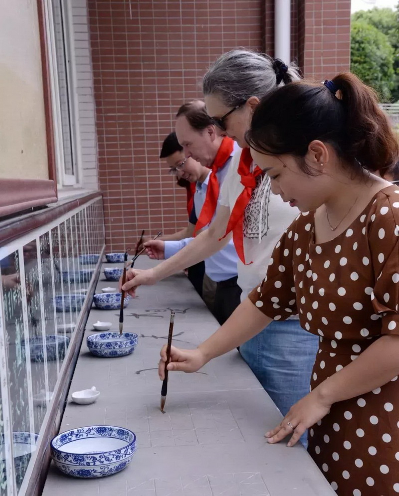 孩子们用流利的英语带着外宾们参观体验,每到一处来宾们都听得聚精会神,为我校红领巾志愿者们点赞!