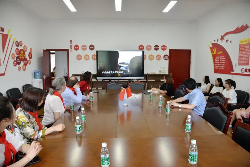 来宾观看学校宣传片,了解学校发展历程及学校特色课程设置。