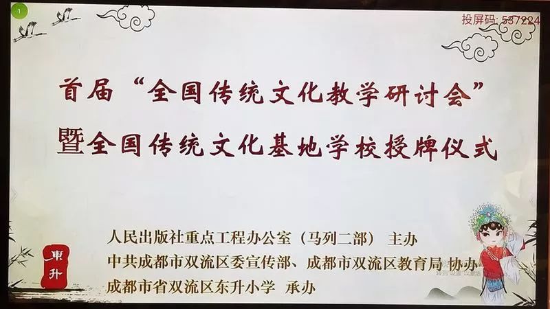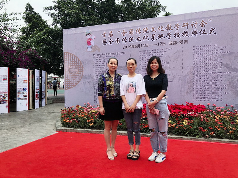 On June 11, the first "National Traditional Culture Teaching Seminar" and the National Traditional Culture Base School Licensing Ceremony were held in Dongsheng Primary School, Shuangliu District, Chengdu. Vice-principal Hu Tao, Chinese teacher Bao Chengjiao and Zhang Bo participated in the activity.