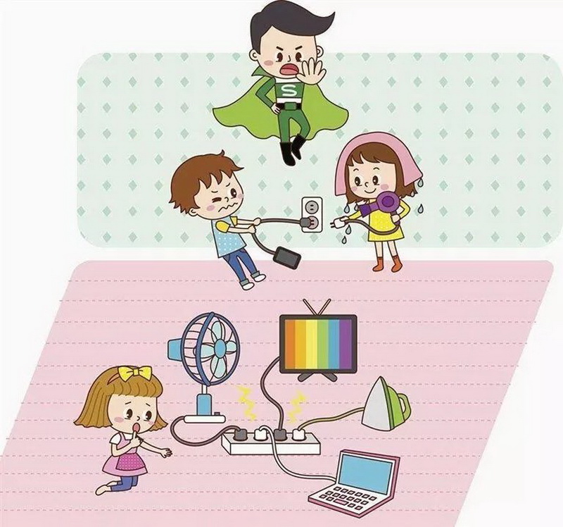 1. Learn commonsense of electricity, do not touch the power supply with hard objects, and donot use a certain part of the human body to contact the power supply to preventelectric shock. Under the guidance of parents, gradually learn to use ordinaryhousehold appliances.