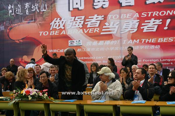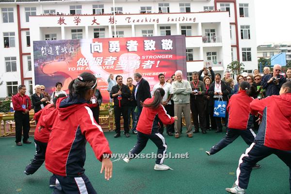 世界拳击理事会三十余位成员代表来到我校,慰问我校的同学和老师,并进行一系列的互动。成都市体育局局长、成都市体育局副局长、都江堰市副市长、都江堰市体育局局长、都江堰市教育局副局长也参加了今天的活动。