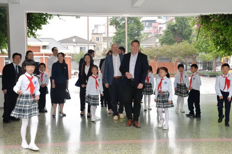 The guests visited the campus accompanied by the leaders of Dujiangyan Foreign Affairs Office, President Ma and English teachers. Red scarf volunteers introduced our campusculture to our guests in fluent English.