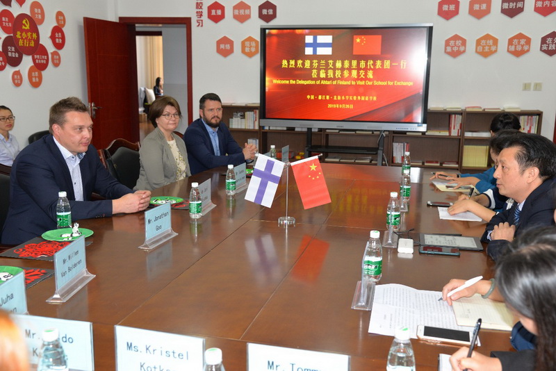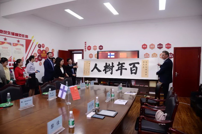 Through watching the school promotional film, the guests learned about the development process of the school and the characteristics of the school curriculum. Principal Ma and the guests discussed the situation of education inChina and Finland. In the process of communication, the willingness to cooperate further was expressed.