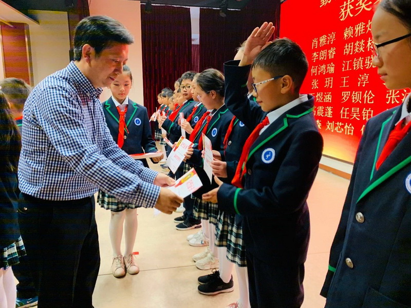 In order to fulfill the requirement of "cultivating new people of the times who are responsible for national rejuvenation" and practicing the socialist core values, the representatives of the students gathered under the flaming five-star red flag. The award ceremony of "Good pupils of the new era" was held in the Academic Hall, and 58 "Good pupils of the new era" were appraised.