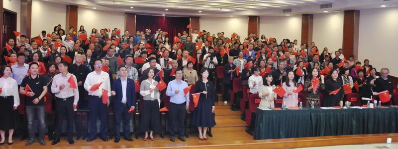 He Miao, deputy secretary of the communist youth league committee of the city, Zhou Rong, chief of the comprehensive section of the municipal social governance committee, Jiang Zhiyuan, chief of the creative section of the municipal literary federation, and Ai Guangming, secretary of the working committee of the communist party of China and Chen ling, deputy secretary of the working committee of the communist party of China. Headmaster Ma of our school invited to attend this event. 活动伊始,全体起立,在我校音乐老师向老师的指挥下,大家激情昂扬、高唱国歌。
