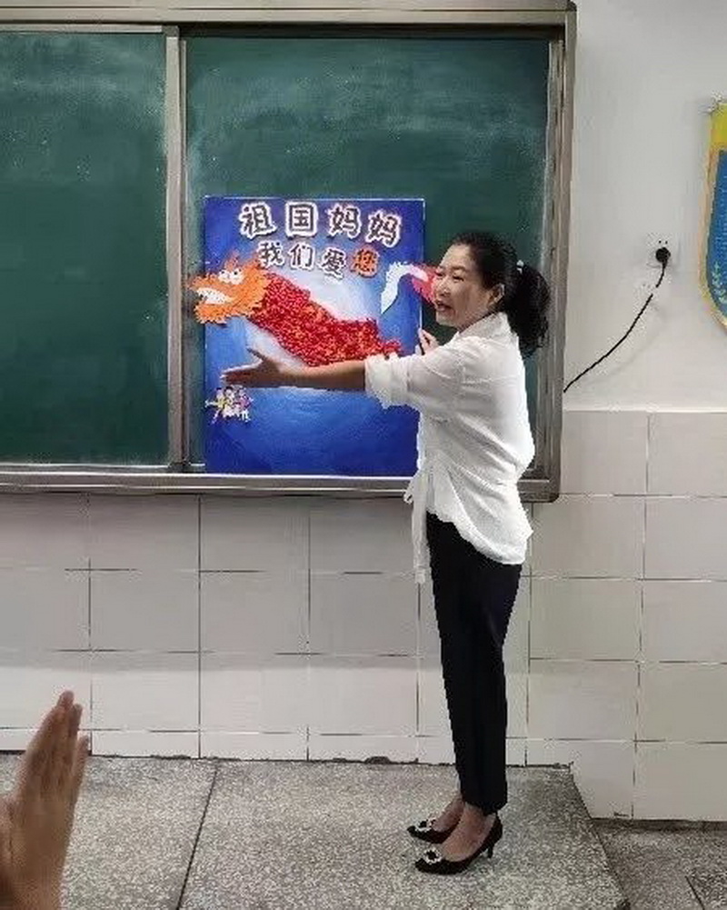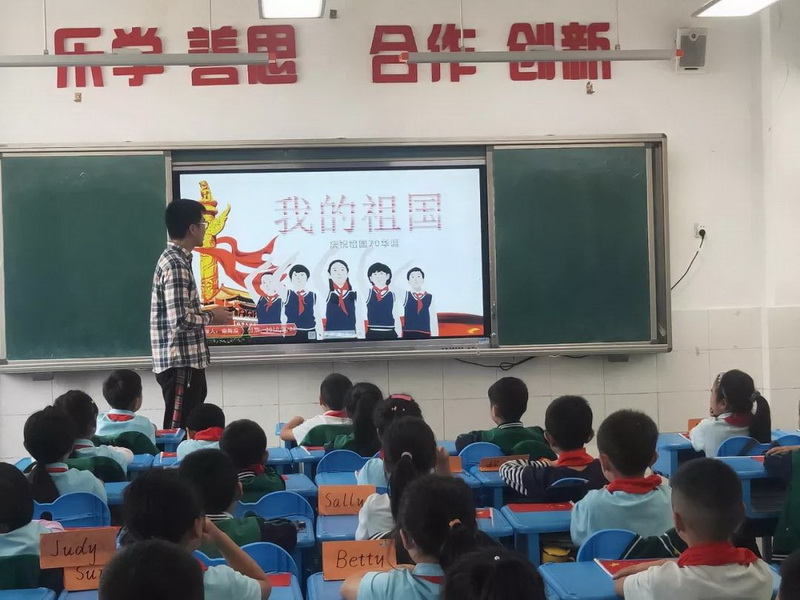 Zhu Hongshen's mother fromclass 2 grade 4 talked about "my motherland and I" and wishedmotherland a happy birthday and prosperity.