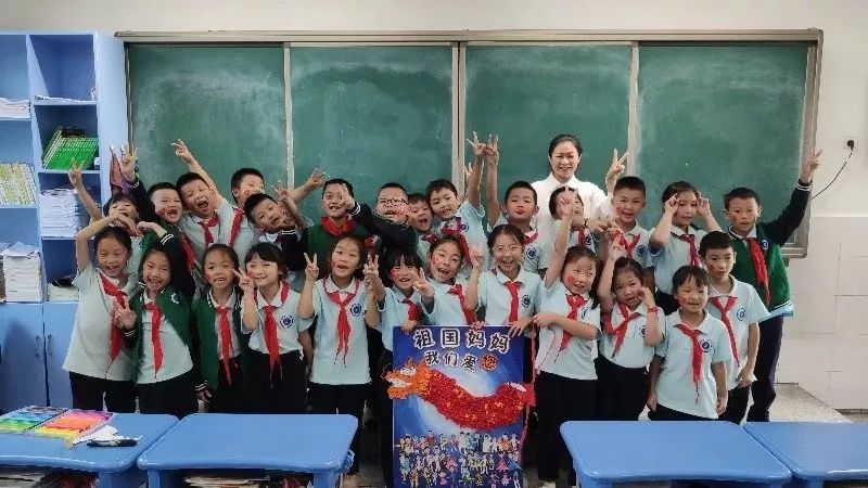 Class 6 Grade 2. In order tocelebrate the 70th anniversary of the motherland, the children started to makea beautiful picture under the leadership of Zheng Youyuxi's mother. We love you motherland.