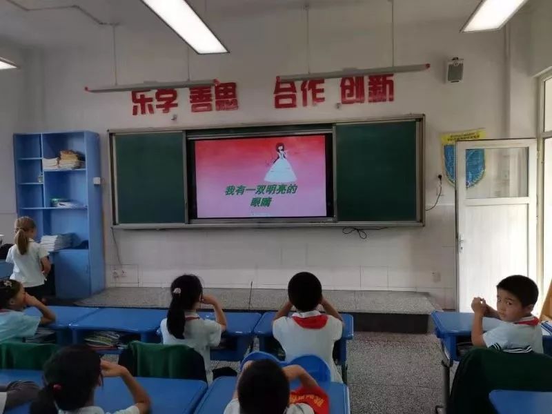 Liu Yi's parent from class 1 grade 3brought "I have a pair of bright eyes" to tell the children theimportance of eyes and daily protection.