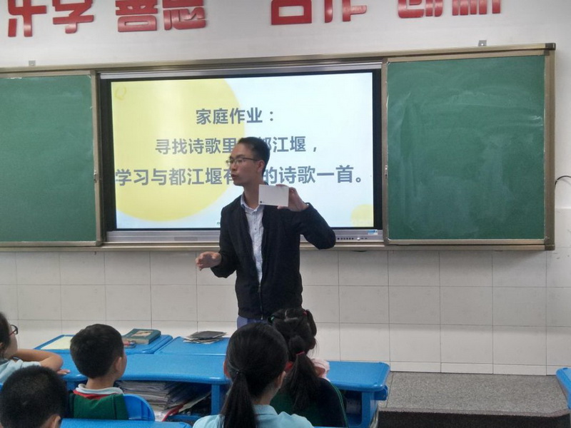 Zeng Kangcheng's mother from class 1grade 5 invited Li Ji, a teacher from the poetry society of Liu Jie qi lipoetry township, to give the children a wonderful lesson -- "Dujiangyan inpoetry -- poetry township of Liu Jie qi li".