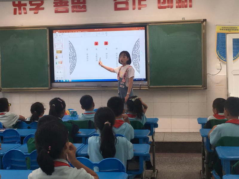 Jiang Yuhuan's parent from class 5grade 5 taught the course "The Significance of Travel". Work hard.The world is so big, we must go and see it.