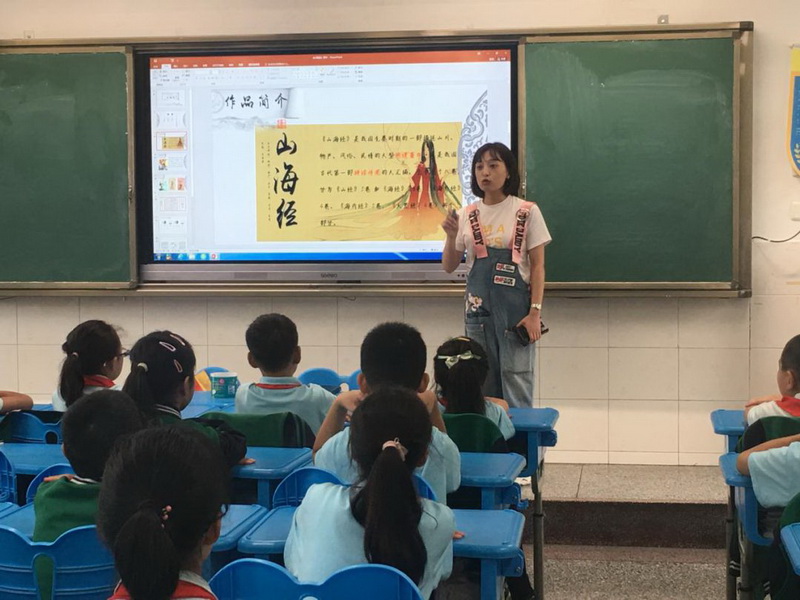 Li Zechen's mother from class 2 grade5 Shared the benefits of reading with the children, especially recommending theClassic of Mountains and Seas.