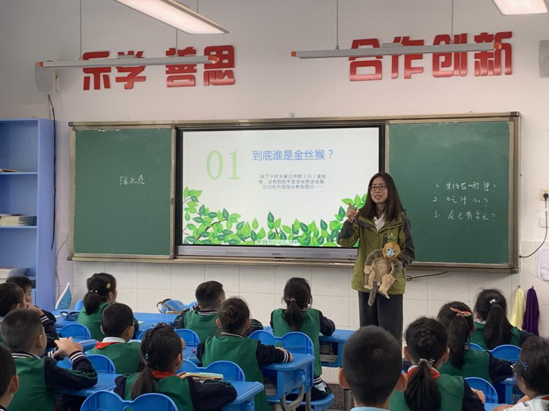 Long Xinyan's mother from class 3grade 5 brought Panda Course to protect the national treasure.