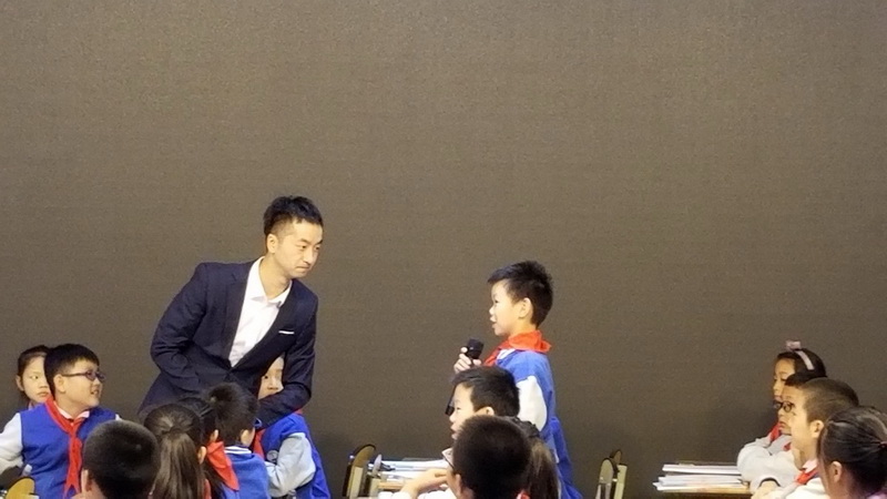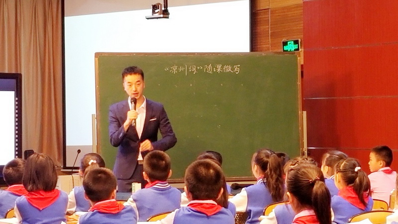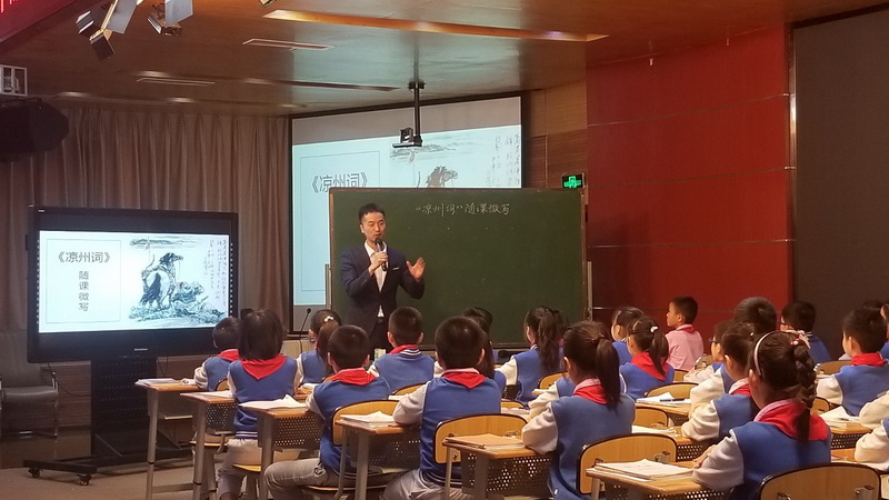 Mr. Wu Jianqiang showed a wonderful lesson for teachers from all over the province. At the beginning of this ancient poem, Teacher Wuguides children into situations, cleverly plucks them into imaginary wings,feels the warriors' blood in the sand field, and leaps through thousands ofyears of time and space to experience the cruelty of the frontier fortress battlefield. In the whole class, Wu teacher's guidance and students' enthusiasm. The children were witty and attracted the enthusiastic applause from the teachers.
