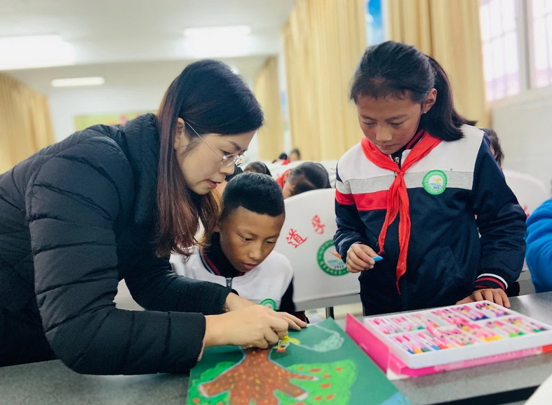 Four dedicated teachers from the aspects of traditional Chinese painting, line drawing, oil painting sticks, clay, heat shrink pieces, etc., gave Tibetan children unique art lessons.