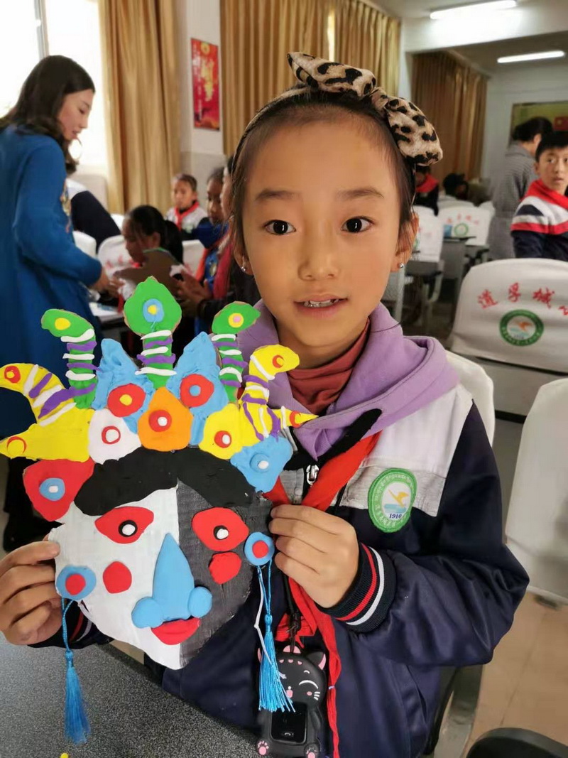 Miss Wang chose the Tibetan opera mask familiar to the local children, and combined with the ultra-light clay of our school, let the children design and make a mask with unique shape and unique style.